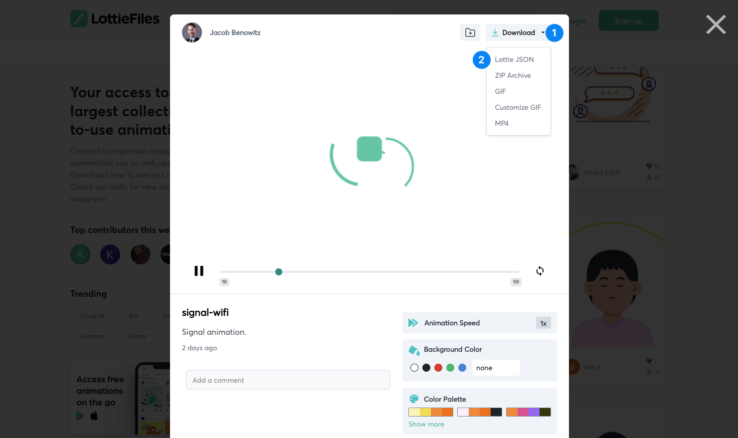 LottieFiles is a website where people can share and download Lottie files.